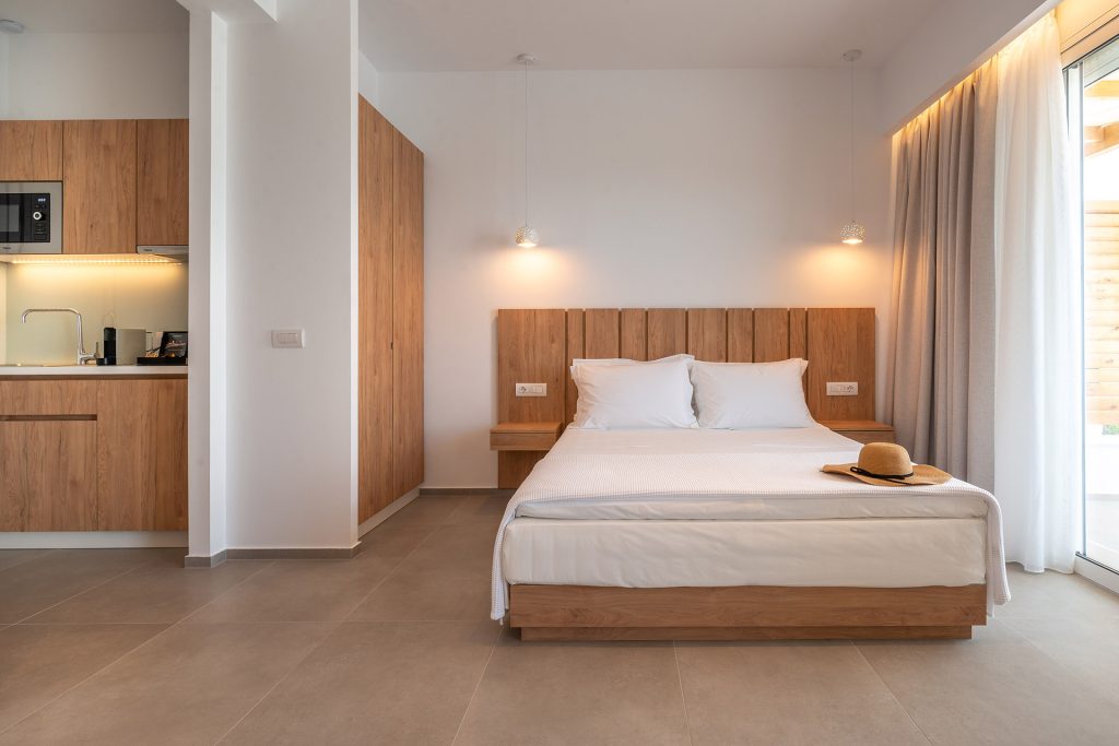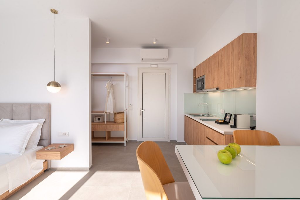 Τα διαμερίσματα αποτελούνται από υψηλής αισθητικής δομικά υλικά και είναι πλήρως εξοπλισμένα με κουζίνα, μεγάλες τηλεοράσεις με όλα τα διαθέσιμα ψηφιακά κανάλια καθώς και προσωπικό μπάνιο με όλες τις σύγχρονες ανέσεις.